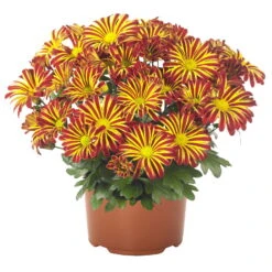 Chrysanthemen ‚Rainbow Circus‘ Rot-gelb Gestreift Topf-Ø 14 Cm, 4er-Set