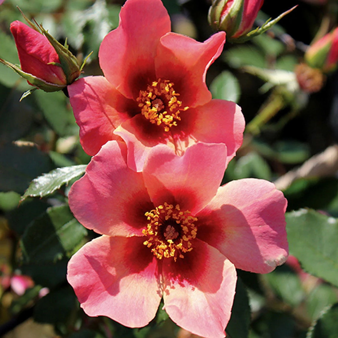 Ihr betörender, facettenreich gefärbter Flor und das gesunde, mittelgrüne, leicht glänzende Laub, machen diese besondere Beetrose zu einer hervorragenden Wahl für Blütenhecken, Stein- oder Bauerngärten. Von den ungefüllten Blüten geht aber nicht nur ein ästhetischer Reiz aus, sie sind auch eine wertvolle Nahrungsquelle für Bienen und Hummeln.