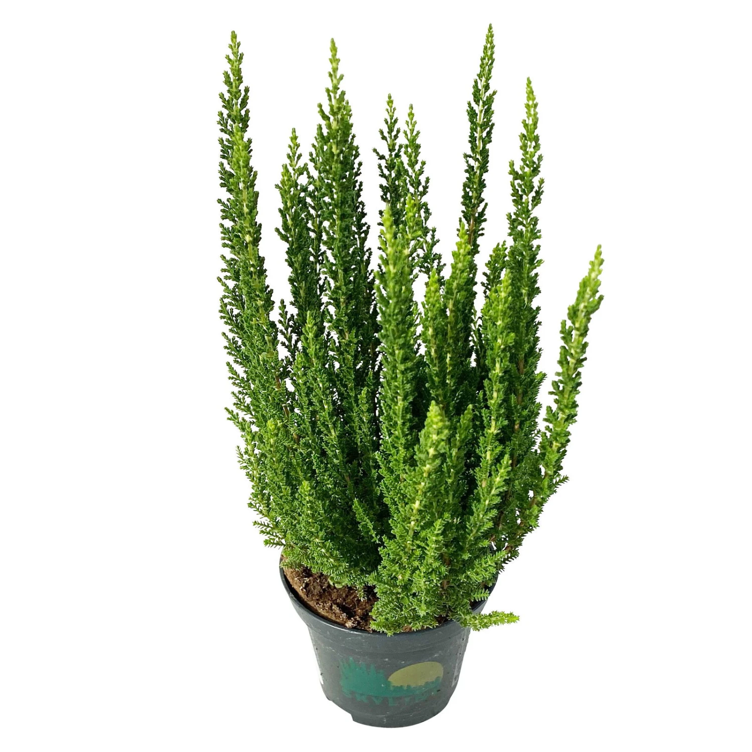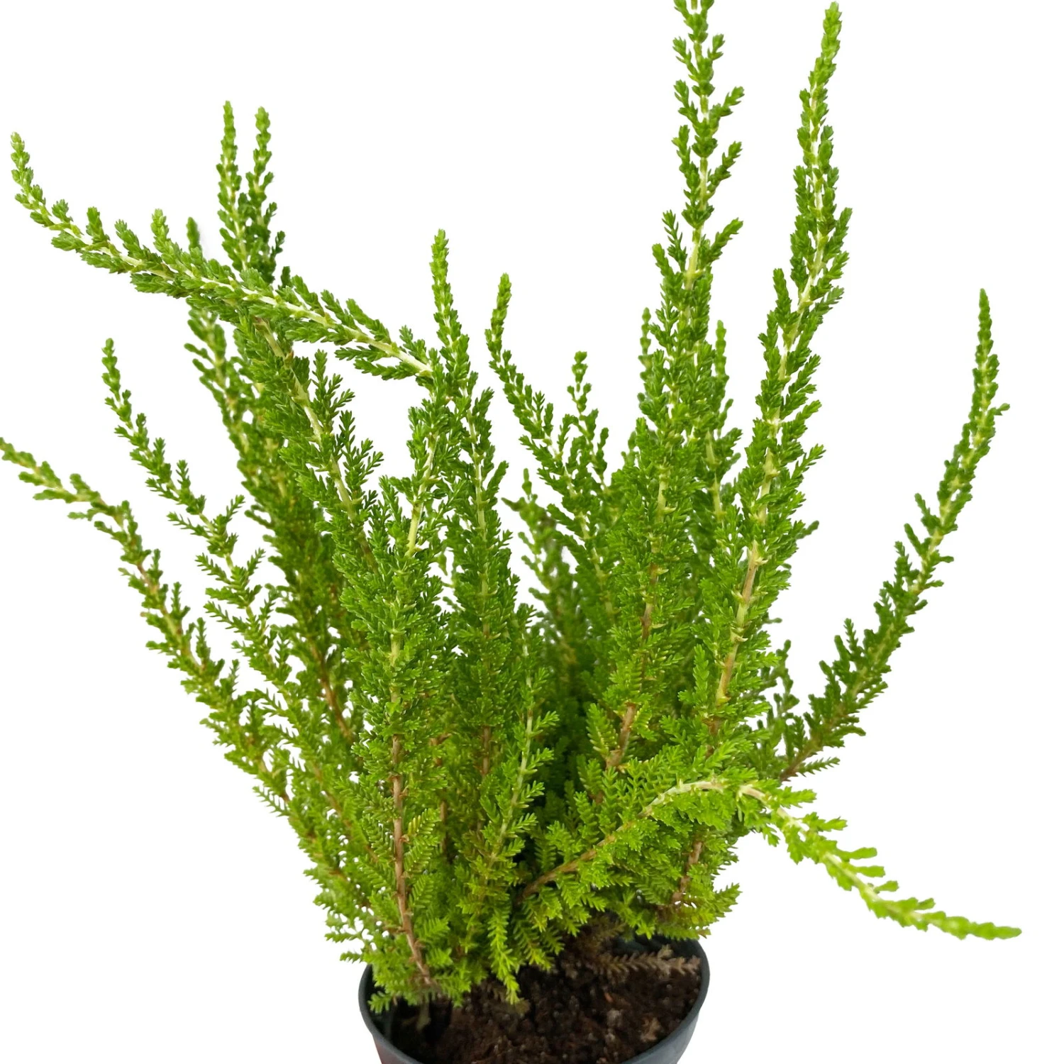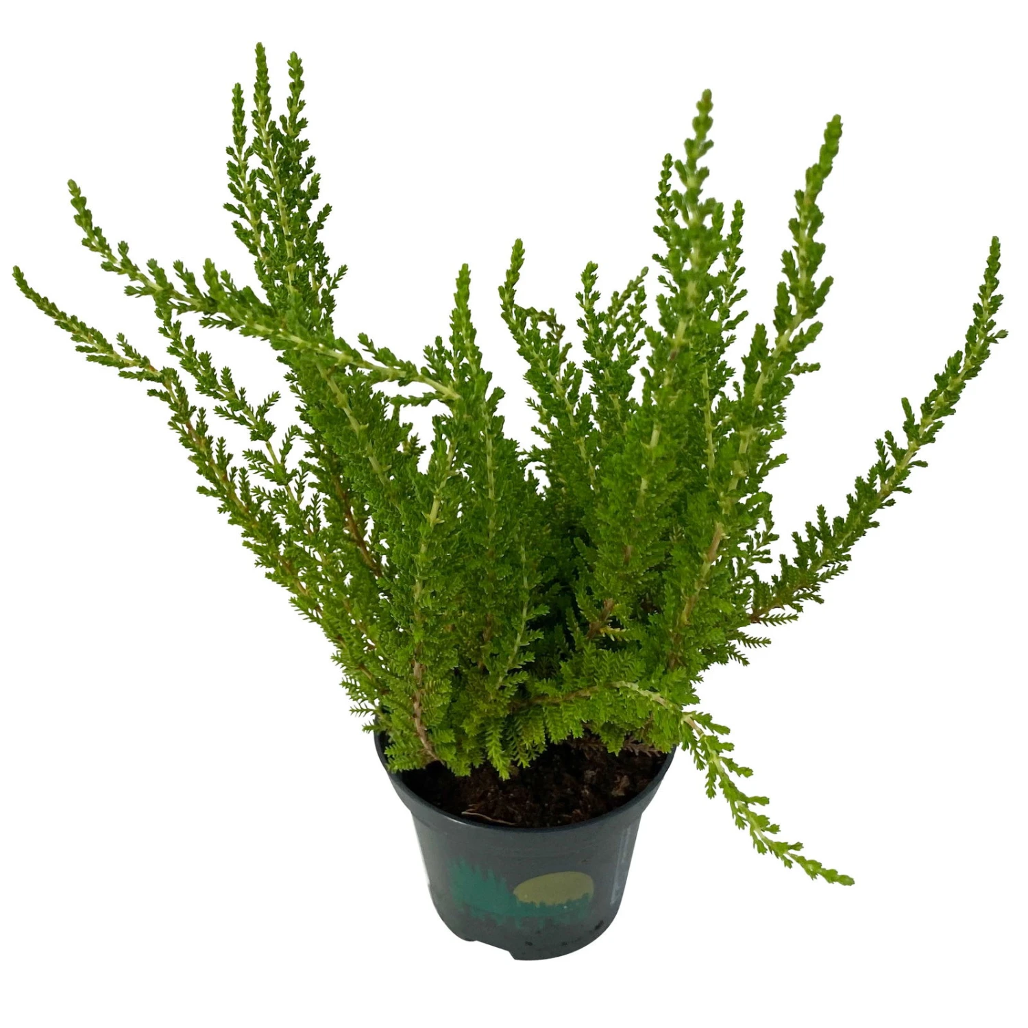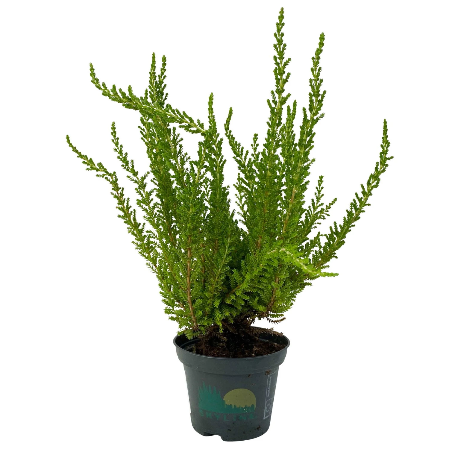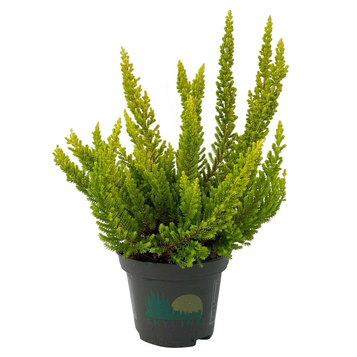 Die schuppenförmig, nach oben eingerollten, ledrigen Blätter der Besenheide (Calluna vulgaris SKYLINE®) liegen an den Zweigen an. Die Calluna vulgaris SKYLINE® wird auch Sommerheide oder Heidekraut genannt. Die Besenheide wächst aufrecht und überzeugt durch eine attraktive, immergrüne Struktur in verschiedenen Farbnuancen von gelb über grün bis rötlich. Der winterharte Zwergstrauch kann eine Wuchshöhe von 30 bis zu 50 cm erreichen und auch ebenso breit werden.