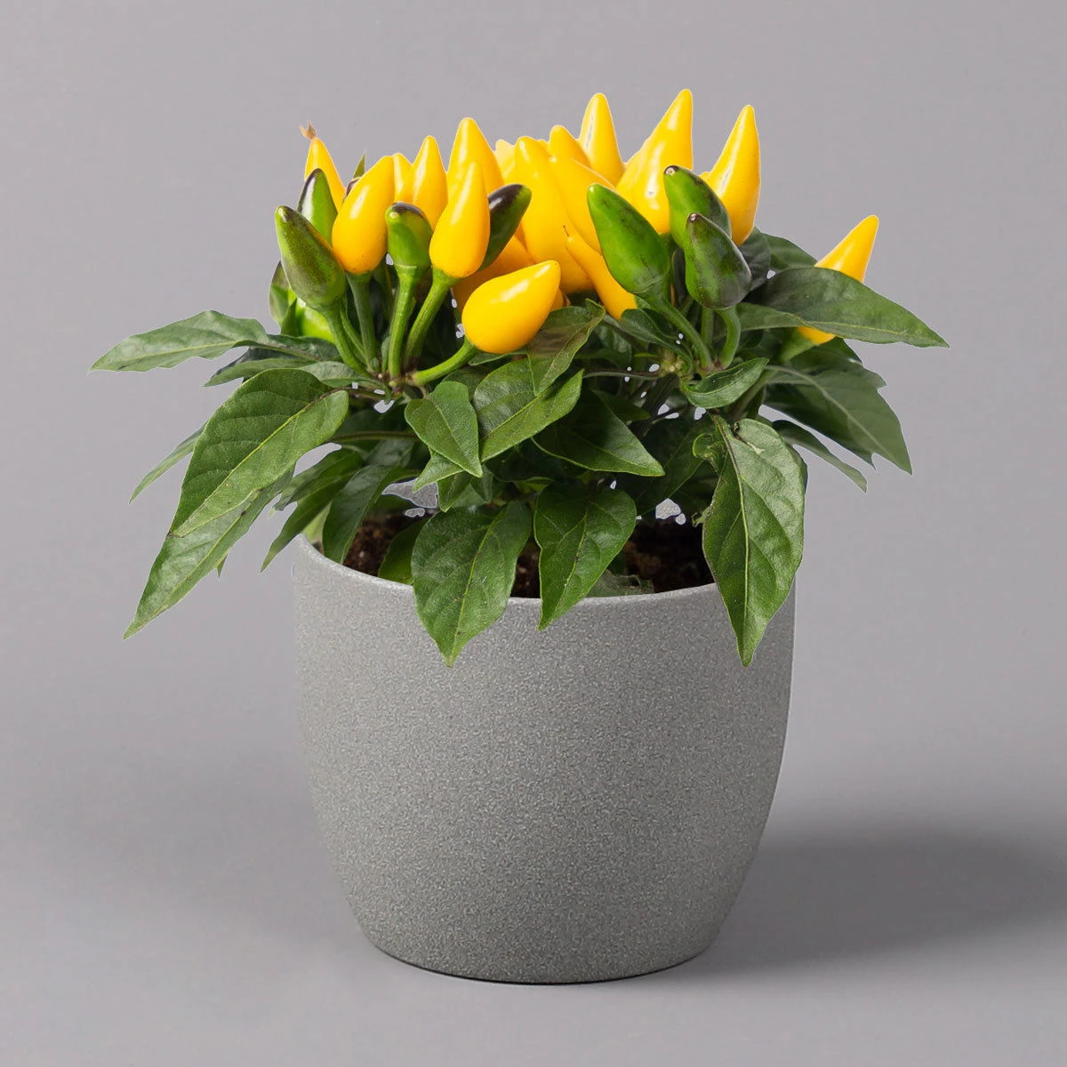Der Zierpaprika (Capsum anuum ‚Ornamenties Yellow‘), auch unter dem Namen Spanischer Pfeffer bekannt, ist ursprünglich in Mittel- und Südamerika beheimatet und bringt tolle Farbkleckse in Ihre herbstliche Bepflanzung. Besonders in Verbindung mit anderen Herbstblühern oder Strukturpflanzen erschaffen Sie wundervolle Arrangements, die von der besonderen Leuchtkraft der kleinen Zierfrüchte profitieren.