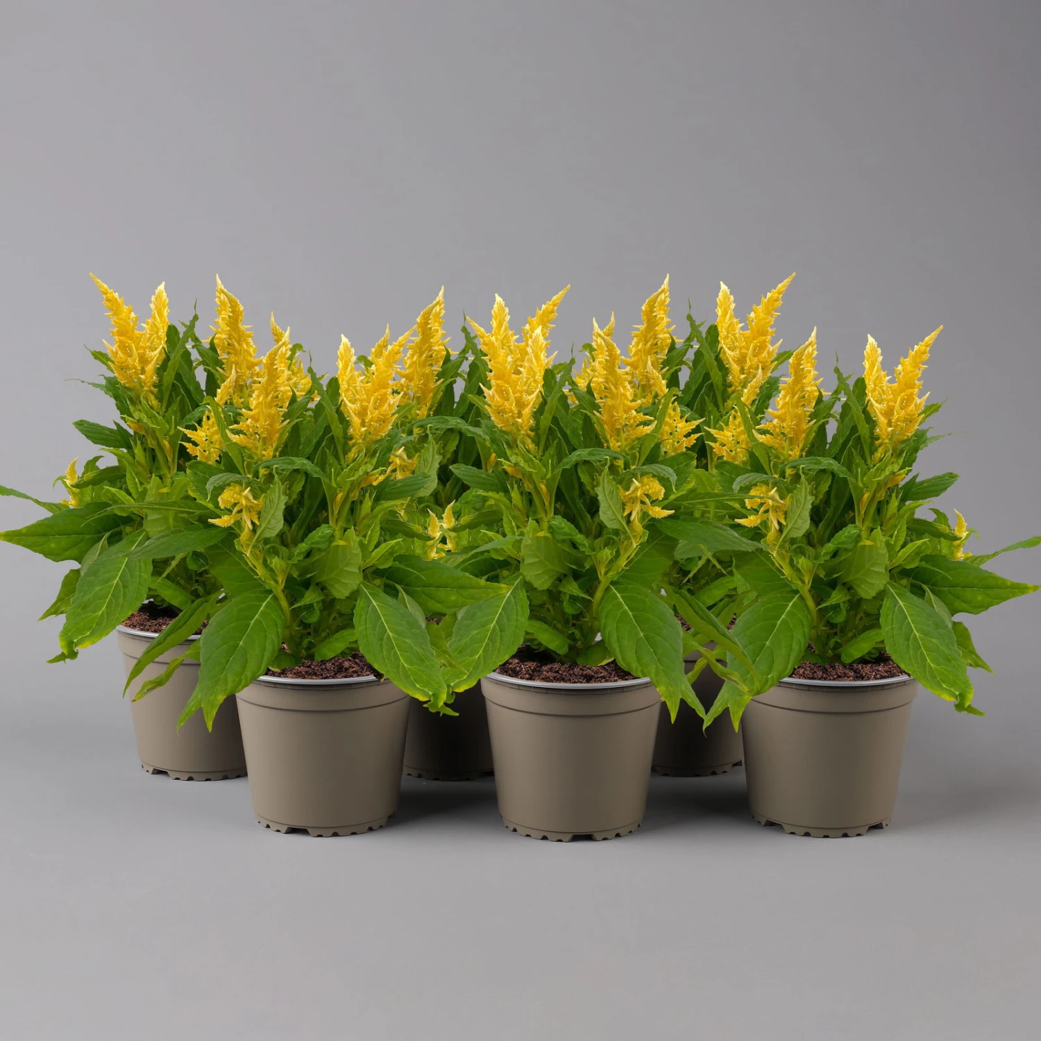 Die Blütenstände der Federbusch-Celosie erinnern an Büschel aus Federn, sind endständig und überzeugen mit kräftigen Farben. Die Blüte reicht von Juni bis in den September hinein, wobei das regelmäßige Ausschneiden von Verblühtem die Nachblüte fördert. Die Celosia ‚Kelos Fire Yellow‘ überzeugt mit herrlichem Gelb und bringt so die Sonne in Ihr Zuhause.