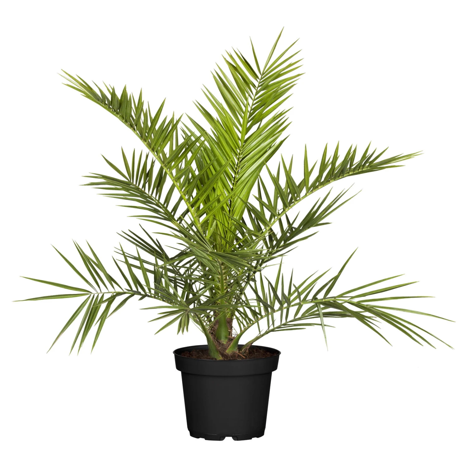 Da Dattelpalmen aus südlichen Regionen stammen, bevorzugen sie helle, sonnige Standorte und warme Temperaturen von 20 bis 25 °C. Im Winter müssen die Pflanzen frostfrei an einem hellen, kühlen Platz bei 10 bis 15 °C überwintert werden, da sie nicht frosthart sind. Die Dattelpalme sollte immer leicht feucht gehalten werden, Staunässe muss dabei aber vermieden werden. Dazu bietet es sich an, der Pflanzerde Blähton oder Kies als Drainageschicht beizufügen, damit das Gießwasser ungehindert abfließen kann. Achten Sie beim Gießen darauf, dass die oberste Erdschichte abtrocknet, bevor die nächste Wassergabe erfolgt. Da die Palme leicht saures Substrat bevorzugt bietet es sich an, kalkarmes Wasser zu verwenden. Zwischendurch darf die Dattelpalme gerne mit lauwarmem Wasser angesprüht werden, was der Blattgesundheit zuträglich ist. Von März bis September profitiert die Pflanze von einem Flüssigdünger für Palmen und Zimmerpflanzen alle 14 Tage. Im Winter reicht es aus, nur alle 6-8 Wochen zu düngen.