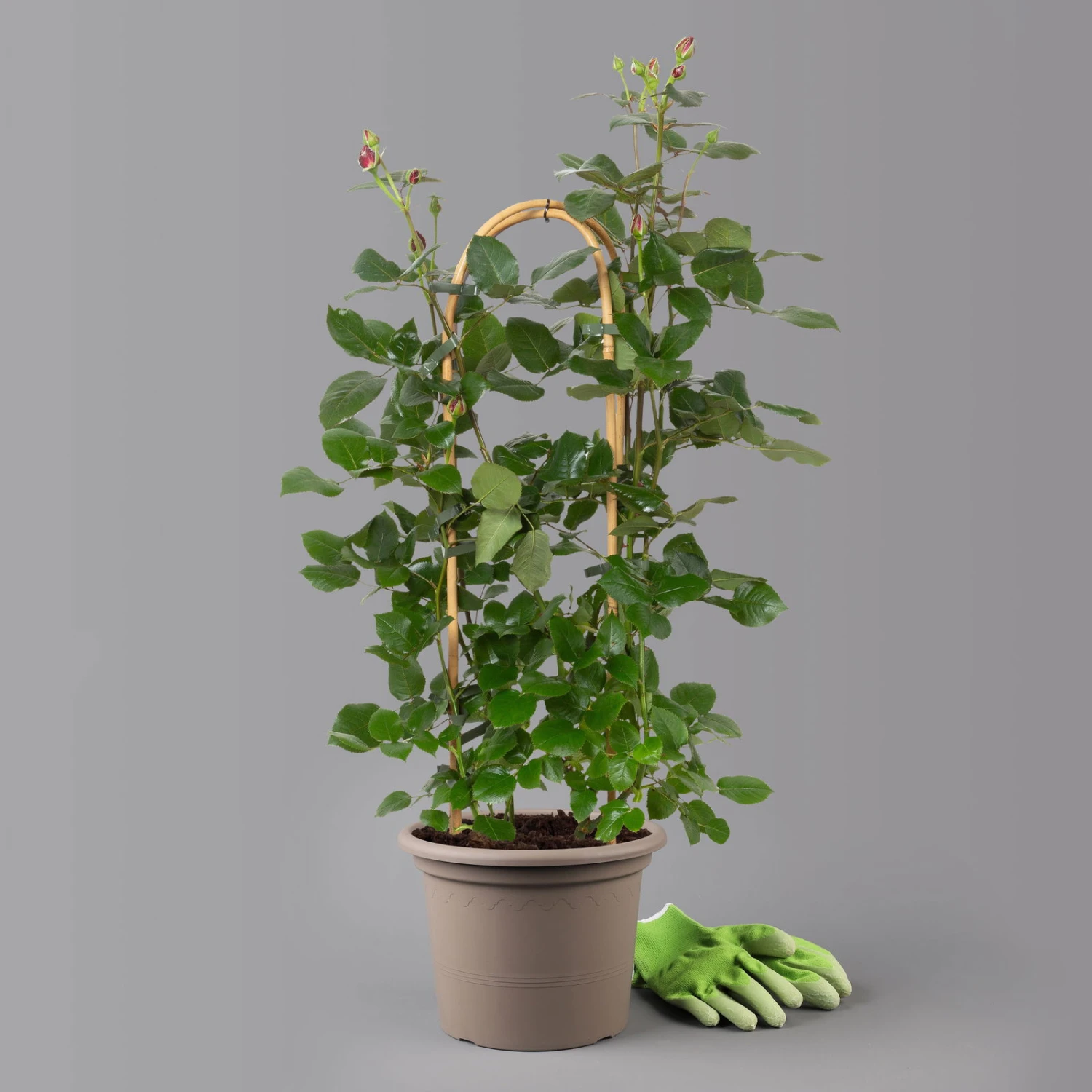 Diese Rose ist an einem Doppelbogen gezogen.