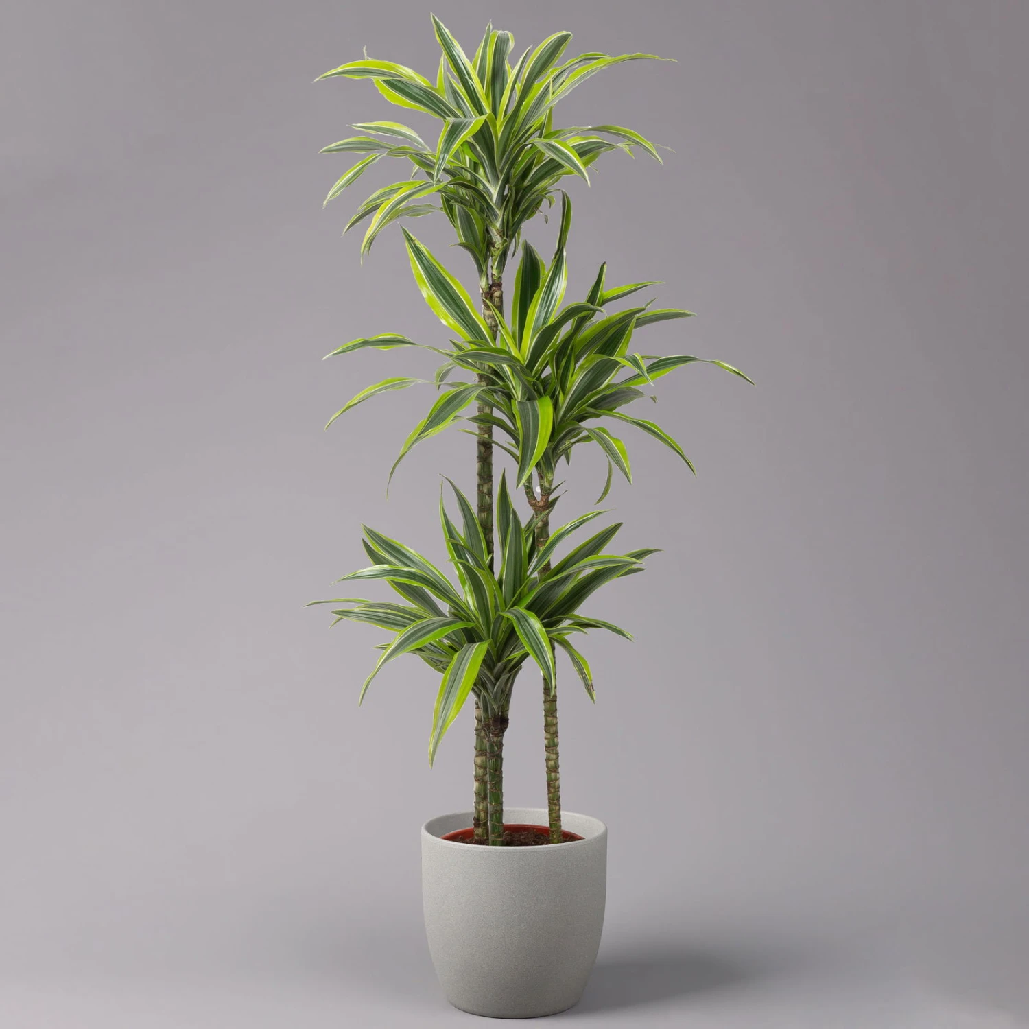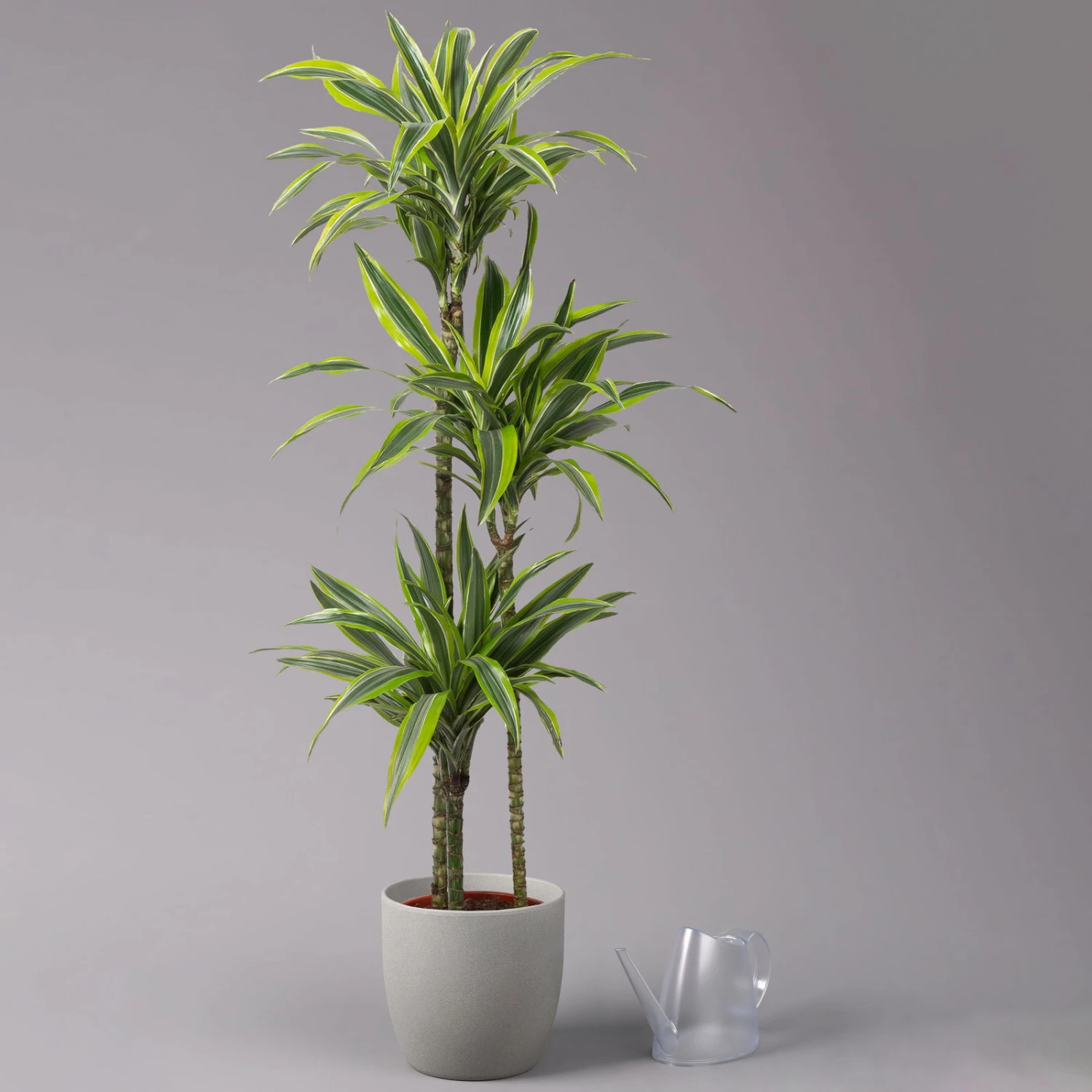 Die Dracaena ‚Lemon Lime‘ ist eine origineller Raumklimapflanze, die mit einer Mischung aus leuchtenden gelben und kraftvollen grünen Tönen begeistert. Dank einer attraktiven Blattzeichnung avanciert diese Pflanze in jedem Raum zu einem Highlight und stellt außerdem einen effektiven biologischen Filter dar. Die Drachenbäume vermögen es nämlich, der Raumluft schädliche Verbindungen zu entziehen und eignen sich daher hervorragend für den Einsatz in einem Büro oder Arbeitszimmer. Die Dracaena ‚Lemon Lime‘ gedeiht an einem hellen Standort, wobei direkte Sonneneinstrahlung zu vermeiden ist. Gießen Sie die Pflanze eher sparsam, für eine harmonische Entwicklung sind regelmäßige Düngemittelgaben von Vorteil.