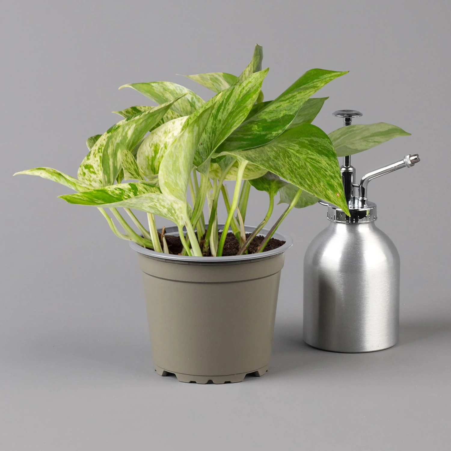 Die Efeutute, Epipremnum pinnatum ‚Marble Queen‘ (syn. Epipremnum aureum ‚Marble Queen‘), ist eine anspruchslose und mit ihren grün-weiß panaschierten Blättern zugleich dekorative kletternde oder hängende Blattschmuckpflanze. Die Efeutute ist eine nahezu perfekte Zimmerpflanze für Anfänger oder fürs Büro, die etliche Fehler wie seltenes Gießen oder nur sporadisches Düngen verzeiht. Mit zu häufigen Wassergaben können Sie dagegen der Efeutute erhebliche Schäden zufügen. An einem hellen, absonnigen oder auch halbschattigen bis schattigen Standort fühlt sich Ihre Pflanze sofort wohl. Zugluft und direkte Sonneneinstrahlung sind dagegen zu vermeiden. Sogar im Winter dürfen die Lufttemperaturen nicht dauerhaft unter 16 Grad sinken. Die Epipremnum pinnatum gehört zu den beliebten Raumklimapflanzen und entzieht der Luft Benzole, Nicotin und weitere Schadstoffe. Bitte stellen Sie Ihre Efeutute außerhalb der Reichweite von Kindern oder Haustieren auf, da der Pflanzensaft giftig ist.
