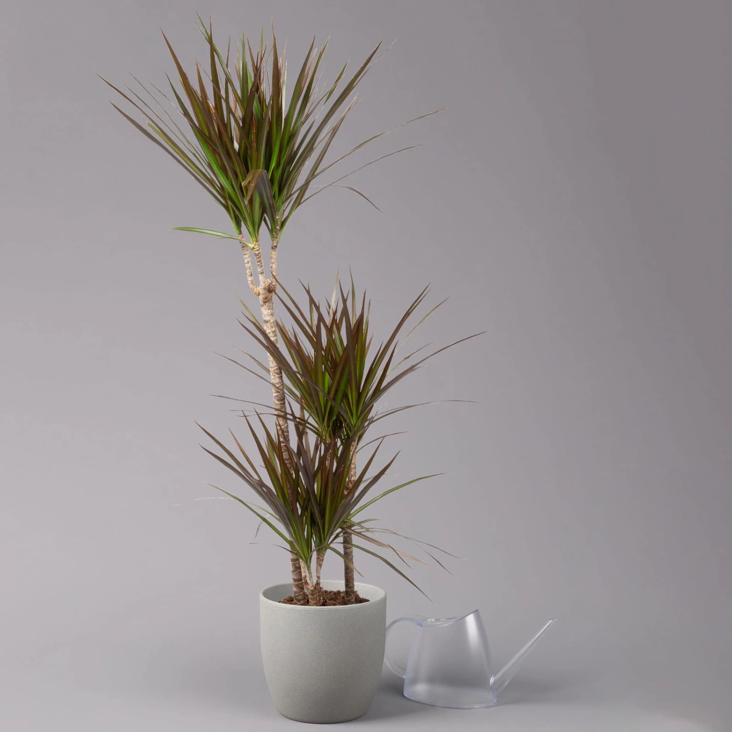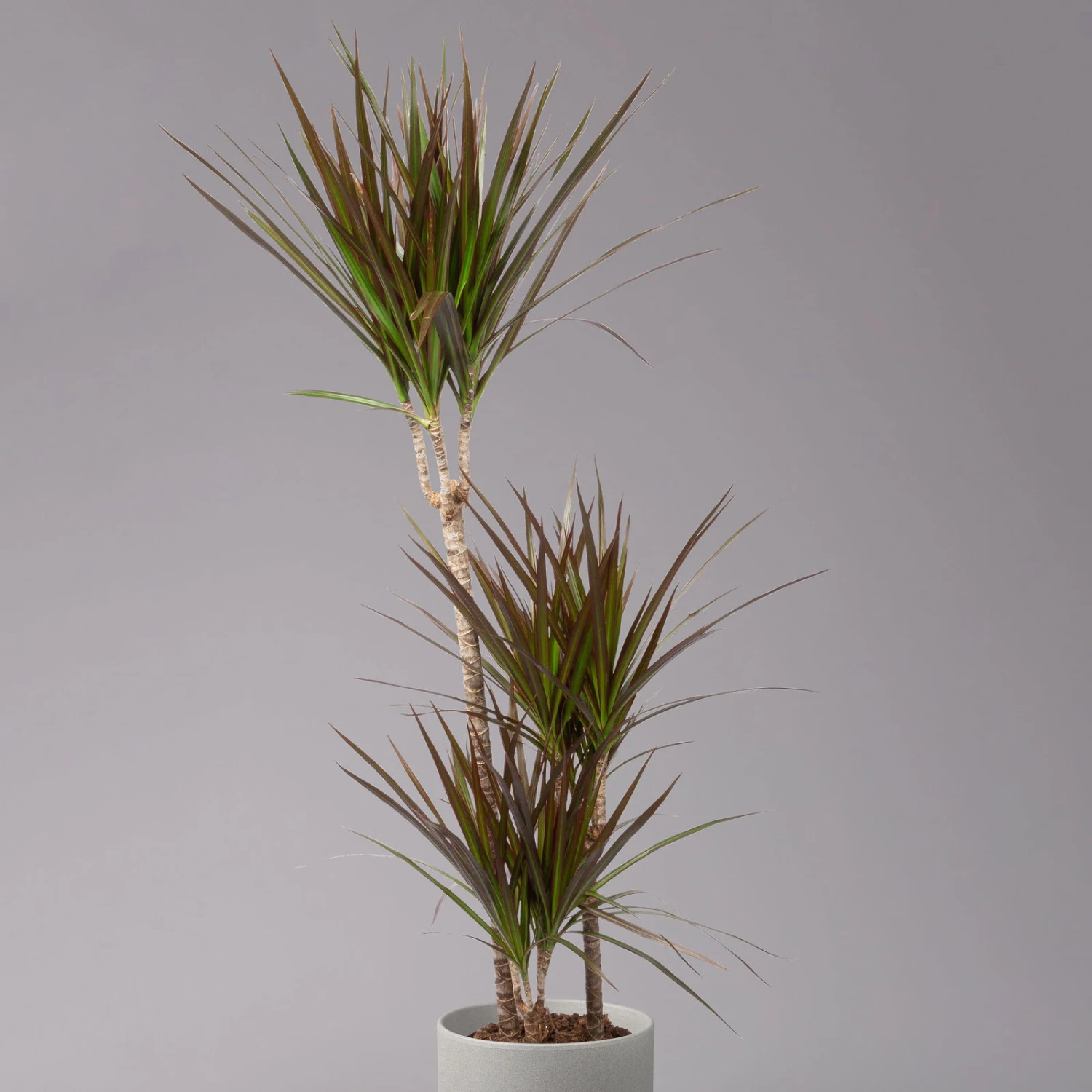 Dank ihrer lanzettlichen Blätter mit filigraner Zeichnung in Rot und Grün ist die Dracaena marginata ‚Magenta‘ ein beeindruckendes Element der Raumbegrünung mit exotischem Touch. Dieses Spargelgewächs macht sich in einem Wohnzimmer oder Büro gleich gut und verbessert nachweislich das gesamte Raumklima. Zum einen synthetisieren Drachenbäume erhebliche Mengen an Sauerstoff, zum anderen filtern diese erstaunlichen Pflanzen solche unerwünschten Substanzen wie Benzol und Formaldehyd aus der Luft heraus. Um optimale Wachstumsbedingungen für Ihre Dracaena ‚Magenta‘ zu schaffen, suchen Sie für Ihren Drachenbaum einen halbschattigen und nicht zu kalten Standort aus und gießen Sie die Pflanze sparsam. Lassen Sie das Substrat zwischen den Wassergaben gründlich antrocknen, gönnen Sie den Drachenbaum aber immer wieder ein wohltuendes Sprühbad.