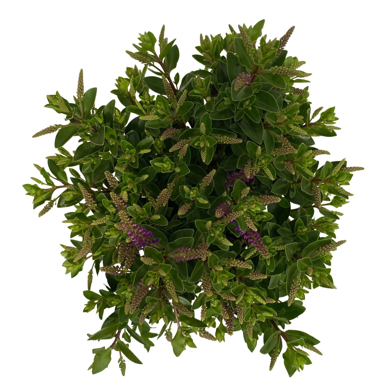 Die kleinen, ovalförmigen Blätter der Strauchveronika (Hebe andersonii ‚All Blooms®‘) überzeugen in einem satten Grün. Die Pflanze wächst aufrecht, buschig und kompakt. Die mehrjährige Strauchveronika ‚All Blooms®‘ stammt ursprünglich aus Neuseeland, kann eine Wuchshöhe von 40 bis 60 cm erreichen und auch entsprechend breit werden.
