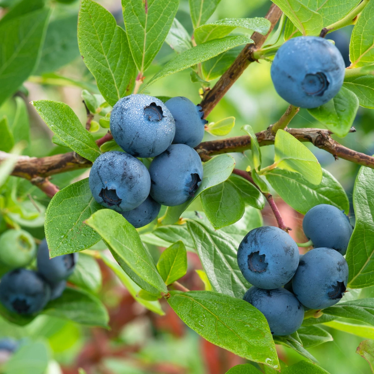 Die mittelgroßen Früchte der Heidelbeere Vaccinium corymbosum ‚Northland‘ schmecken saftig-lecker und verführen zum Naschen direkt vom buschigen Strauch. Aber auch in einer Konfitüre oder Obsttorte vermag die Heidelbeere ‚Northland‘ zu begeistern. Diese Heidelbeerensorte ist robust und sowohl für Kübel als auch fürs Beet bestens geeignet.