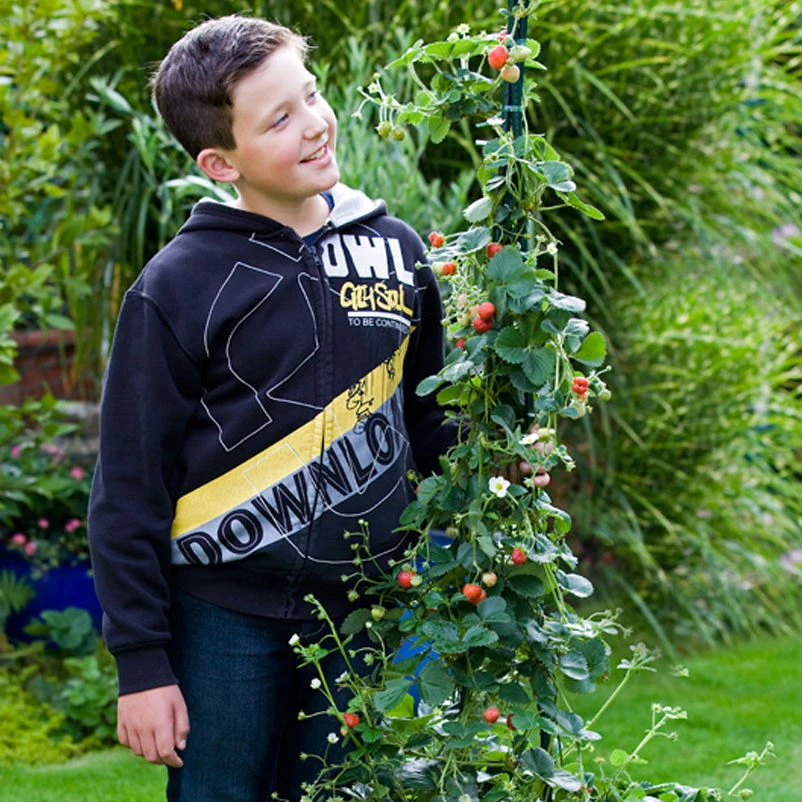 Die Klettererdbeere Hummi® „KletterToni“ eignet sich vortrefflich zur Pflanzung in Pflanzkübeln oder Balkonkästen. So hält die schmackhafte Klettererdbeere nicht nur im Garten, sondern auch auf dem Balkon oder der Terrasse Einzug. Die immertragende Klettererdbeere von Hummi bildet viele starke Ranken, die an einer beliebig wählbaren Rankhilfe aufgebunden werden. Als Rankhilfe bieten sich Spaliere, Stäbe oder Zäune an.