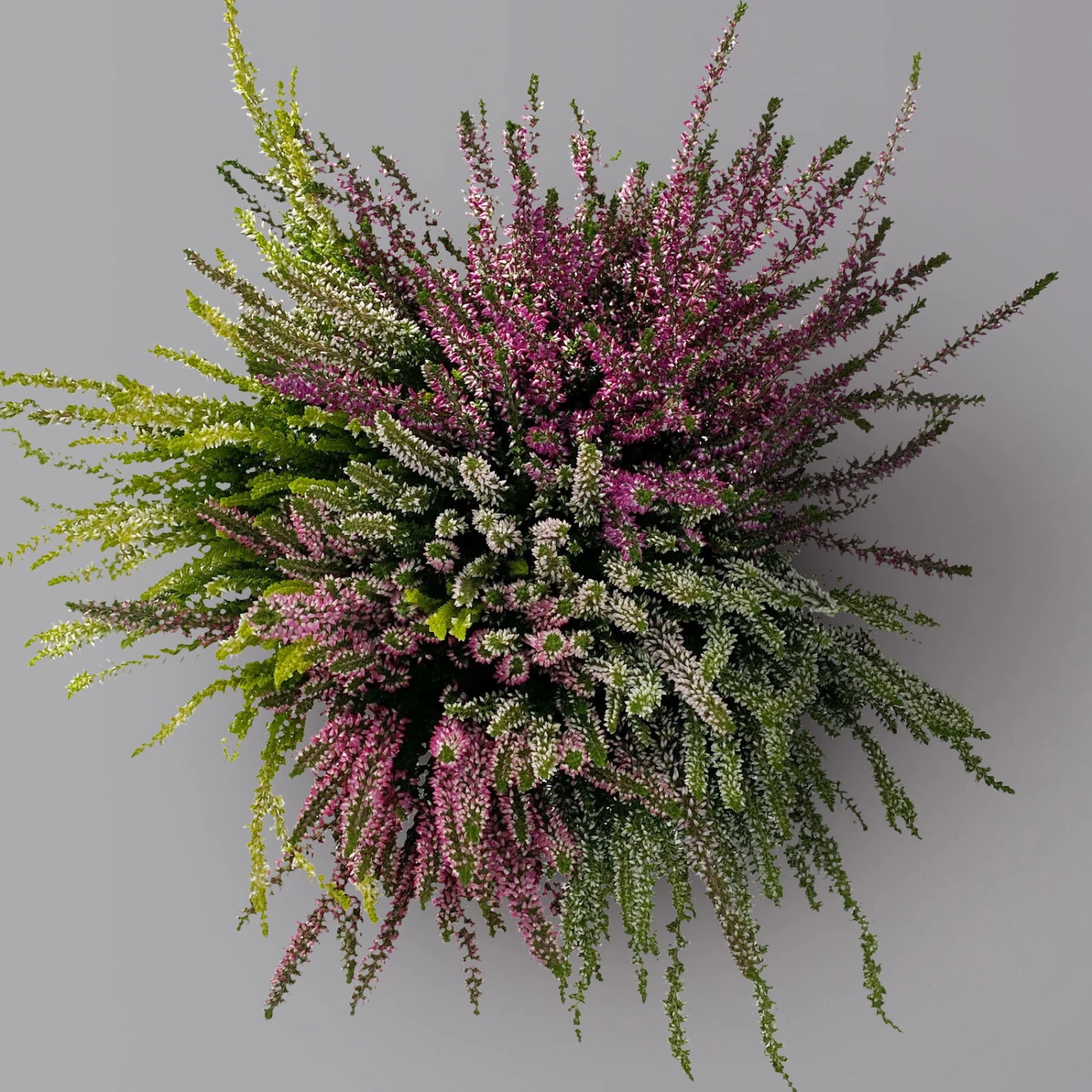 Die kleinen Blüten erscheinen bei der Knospenheide nur, wie der Name erahnen lässt, als Knospen und blühen nicht auf. Dadurch kann ihnen weder Wind noch Regen etwas anhaben und die farbigen Knospen bleiben bis in den Winter hinein schön. Die Calluna ‚High Five’® ist ein Topf, in dem 5 verschiedenen Sorten Knospenheide zusammen kultiviert wurden. Die Calluna ‚High Five’® bringt durch die Farben hellrosa, dunkellila, rot, weiß und gelb Abwechslung in Ihre Bepflanzung.