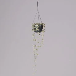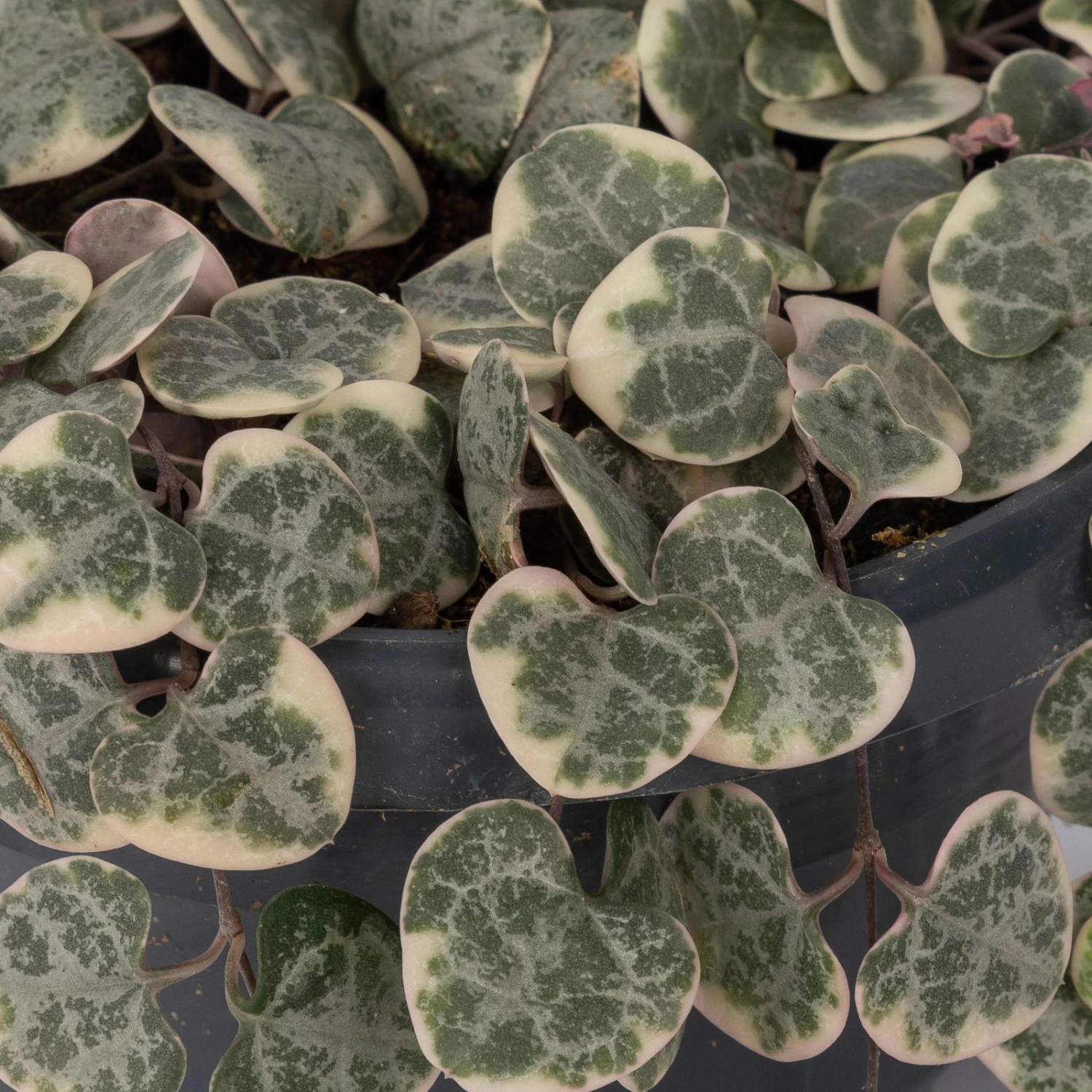 Die Leuchterblume (Ceropegia woodii ‚Variegata‘) ist dank ihrer herzförmigen, panaschierten Blätter und der langen, feinen Triebe eine außergewöhnliche Zimmerpflanze. Noch erstaunlicher sind ihre formschönen Blüten in zartem Rosa, die Sie von Spätsommer bis Herbst erleben dürfen. Die Leuchterblume ist eine sukkulente Zimmerpflanze, die nur moderat zu gießen ist und einen hellen Standort ohne direkte Sonne benötigt.
