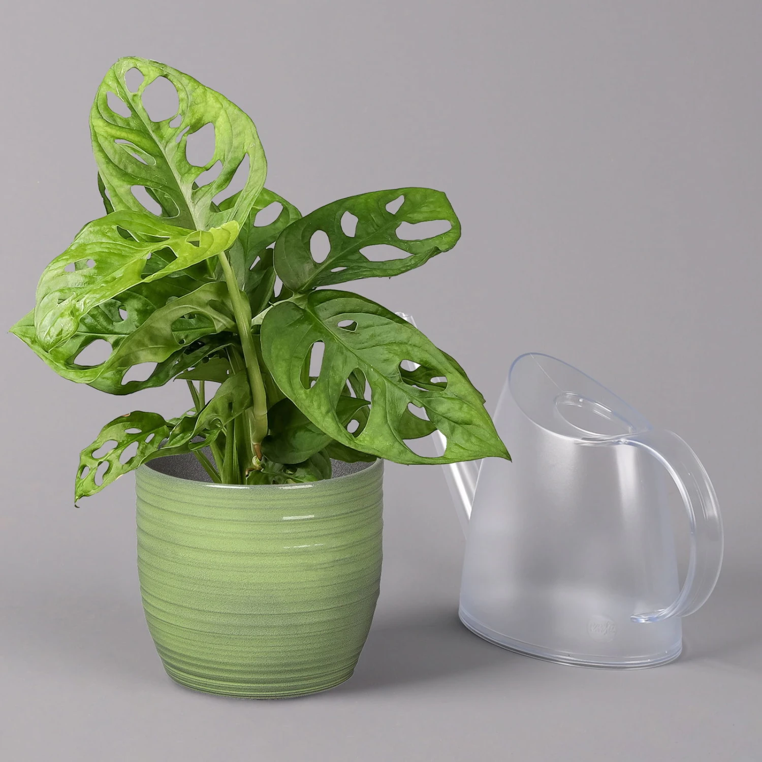 Das Schiefe Fensterblatt (Monstera adansonii) gilt als absolute Trendpflanze und bietet mit seiner außergewöhnlichen Optik die optimale Grundlage für echtes Dschungelfeeling in Ihrem Zuhause. Charakteristisch sind die elliptischen, zugespitzten Blätter, welche von mehreren Durchbrüchen durchzogen sind. Das verleiht der Pflanze ihr löchriges Aussehen und ihren Beinamen ‚Swiss Cheese Plant‘ (zu Deutsch: ‚Schweizer Käse-Pflanze‘). Die Blätter sind kräftig grün uns sitzen an langen Stielen. Die Monstera ist eine Kletter- und Rankpflanze und bildet Luftwurzeln aus, mit denen sie sich in der Natur an Felsen und Baumstämmen empor rankt. Bei der Zimmerkultur kann der Pflanze eine Rankhilfe in Form eines Moosstabs zur Verfügung gestellt werden. Ohne Rankhilfe wächst das Fensterblatt überhängend und kann auch in einer Blumenampel kultiviert werden. Kletternd kann die Pflanze Höhen von bis zu 3 Metern erreichen.