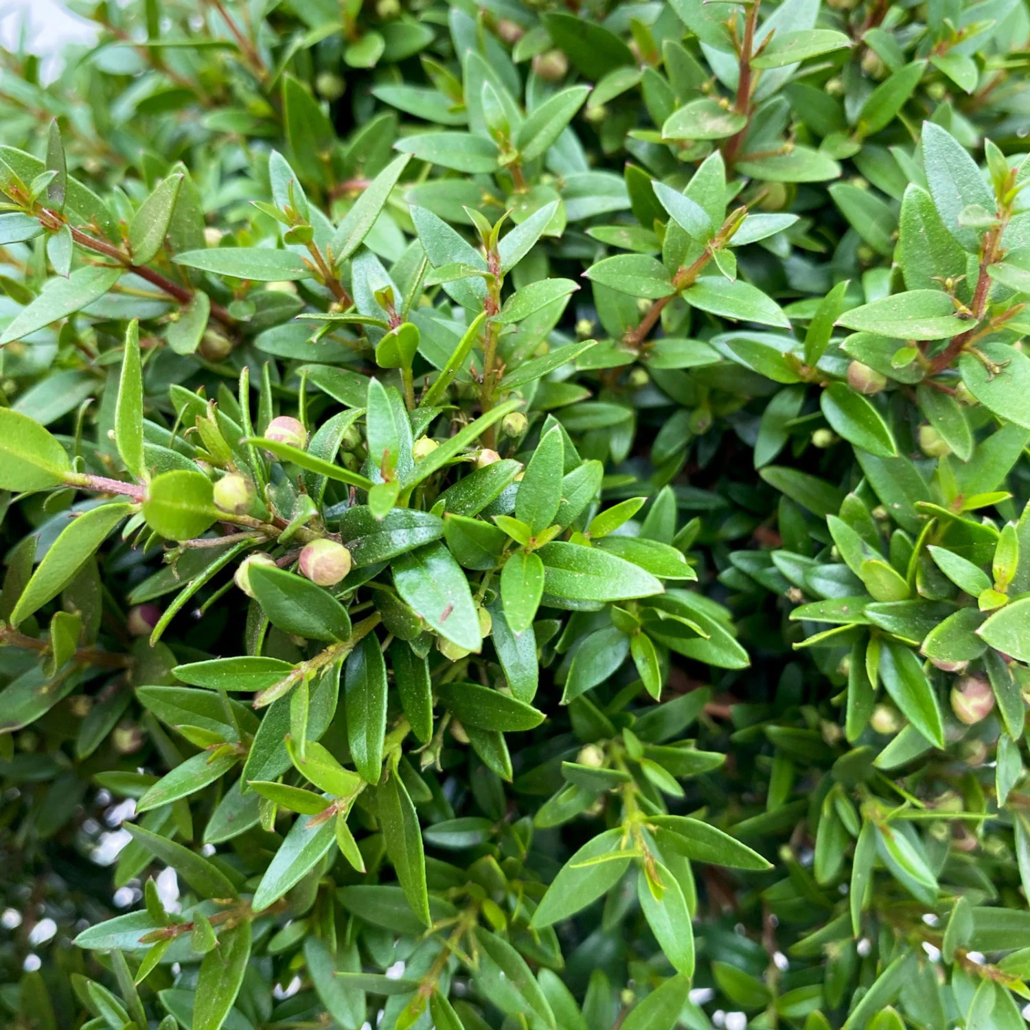 Die Myrte (Myrtus communis), auch Brautmyrte genannt, ist ein immergrüner Strauch und hat kleine, grüne, spitz zulaufende Blätter. Ursprünglich stammt die Myrte aus dem Mittelmeerraum und aus Vorderasien. Die mediterrane Kübelpflanze ist immergrün und kann eine Wuchshöhe von 1 bis 1,5 m erreichen,
