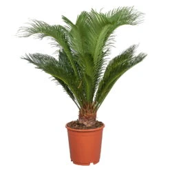 Der Palmfarn (Cycas revoluta), auch Sagopalmfarn genannt, ist eine nahezu ideale Pflanze für helle Wintergärten. Cycas revoluta begeistert mit breiten, filigranen Wedeln und stattlichem Wuchs. Der Palmfarn stammt aus Südostasien und lässt sich daher nicht ganzjährig im Freien pflegen. Im Sommer dürfen Sie für Ihren Sagopalmfarn gerne einen vollsonnigen Standort draußen aussuchen. Im Winter benötigt die PflanzeTemperaturen nicht unter 5 Grad Celsius und gerne ebenfalls viel Licht. Ihr Palmfarn gibt sich mit moderaten Wassergaben zufrieden und ist alle zwei Wochen mit einem Grünpflanzen- oder Palmendünger zu versorgen. Cycas revoluta gehört zu den langsam wachsenden Pflanzen, Sie dürfen außerdem während der Ausbildung von neuen Wedeln den Standort der Cycas nicht verändern.