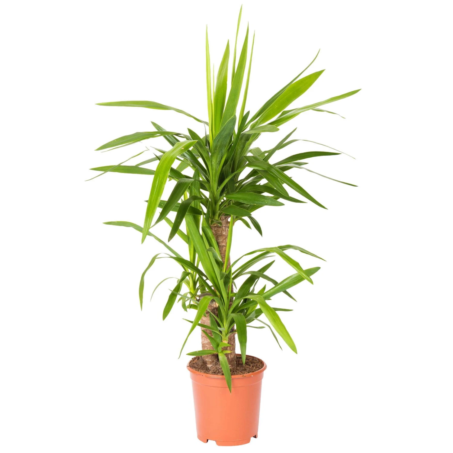 Mit der Yucca (Yucca elephantipes) kaufen Sie eine wunderbar pflegeleichte Palme für Ihr Zuhause. Ob im Wohn-, Ess- oder Schlafzimmer: Die 100 bis 105 cm hohe Zimmerpflanze bereichert jeden Raum. Die Yucca, auch Palmlilie genannt, besticht durch ihre spitzzulaufenden Blätter an den oberen Stammenden. Als besonders widerstandsfähige Zimmerpalme mit einem dicken und kräftigen Stamm darf sie im Sommer auch gerne draußen stehen. Dabei verträgt sie sogar die volle Sonneneinstrahlung. Mäßiges Gießen reicht der Yucca vollkommen aus. An welcher Stelle Sie die stattliche Yucca auch platzieren – die erstklassige Zimmerpflanze im 21 cm großen Topf verzückt mit ihrer schmalen Wuchsform. Nebenbei sorgt sie für ein gesundes Raumklima.