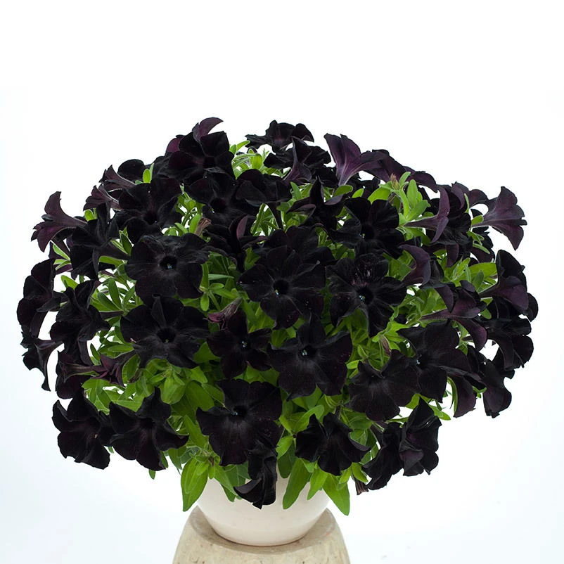 Die großen, trompetenförmigen, schwarzen Blüten, bringen von April bis Oktober Abwechslung in Ihr Zuhause. Die Petunie blüht so üppig, dass die zahlreichen, trichterförmigen und großen Blüten das Blattwerk optisch fast vollständig überdecken.