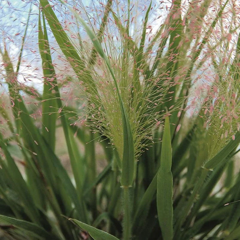 Das Purpur-Liebesgras, Eragrostis spectabilis ist ein sehr dekoratives, sommergrünes Gras und wächst horstbildend und ausladend. Sie wird 40 – 60 cm hoch, 40 – 60 cmbreit und trägt mittelgrüne, überwiegend grundständige, ganzrandige, derbe, überhängende Blätter.