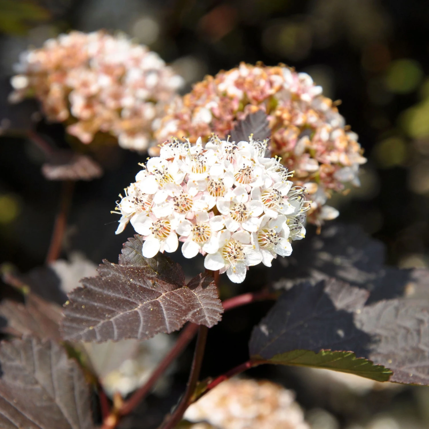 Die Rotblättrige Blasenspiere Physocarpus opulifolius ‚Diabolo’® setzt originelle Farbakzente in Ihrem Garten und macht im Einzelstand und als Heckenpflanze eine gute Figur. Im Juni und Juli zieren das Gehölz effektvolle, kugelförmige Doldenblüten in Creme und locken fleißige Bienenscharen an. Die Rotblättrige Blasenspiere ‚Diabolo’® kann an einem geeigneten Standort imposante Wuchshöhen von bis zu 250 Zentimetern erreichen und ist gleichzeitig gut schnittverträglich. Im Frühjahr empfehlen wir einen Verjüngungsschnitt um ca. ein Drittel. Die Sorte verträgt aber auch einen radikalen Rückschnitt, bei dem Sie die Triebe bodennah abschneiden können. Suchen Sie für die Physocarpus opulifolis einen sonnigen Standort mit durchlässigen und nährstoffreichen Böden aus.