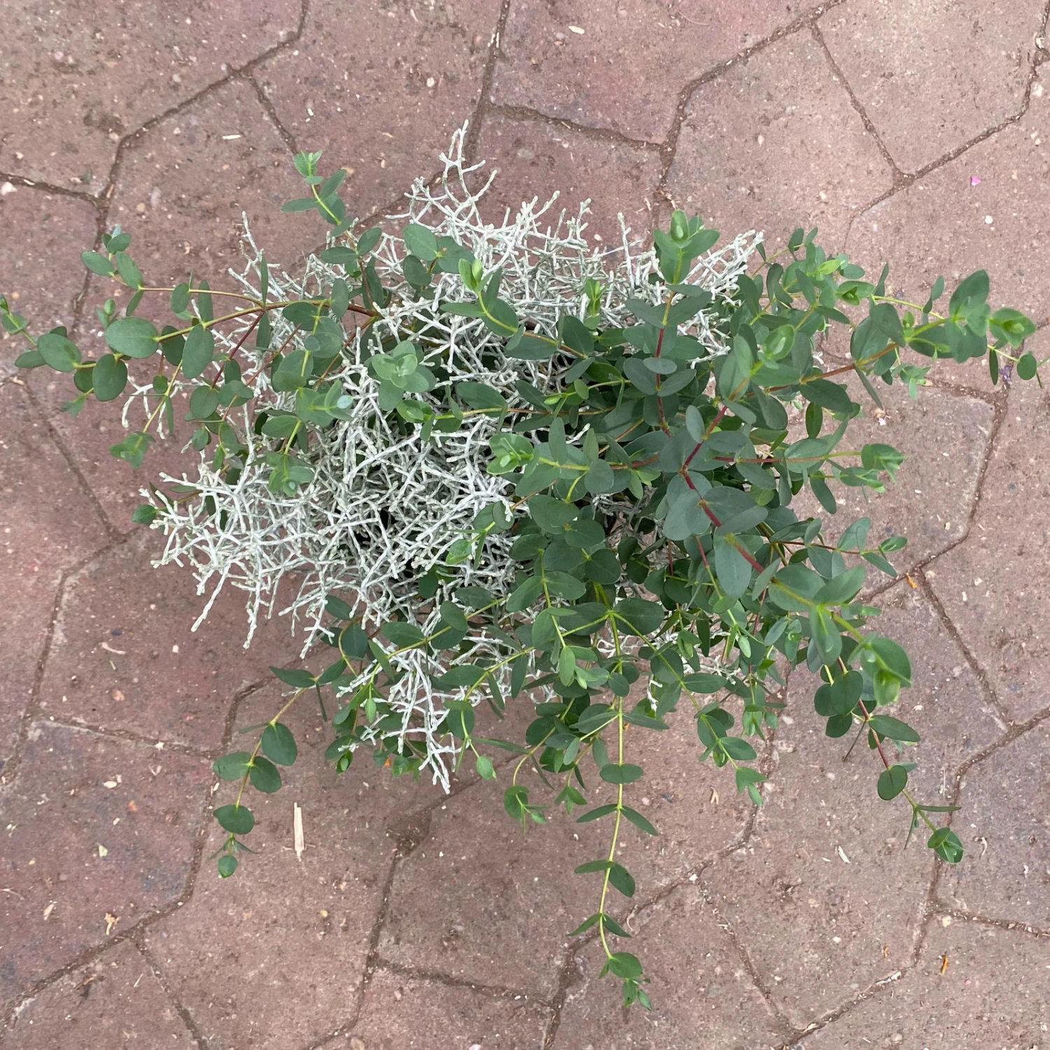 In seltenen Fällen kommt Calocephalus brownii unscheinbar und mit kugelförmigen Blütenständen zur Blüte, während der Eukalyptus cremeweiße, unscheinbare Blüten trägt. Beide Pflanzen sind überaus pflegeleicht und haben einen eher geringen Nährstoffbedarf. Die Pflanzen können an gut geschützten Standorten ohne Minustemperaturen überwintern. Eukalyptus sollte zur Sicherheit aber frostfrei bei max. 10 °C überwintert werden.
