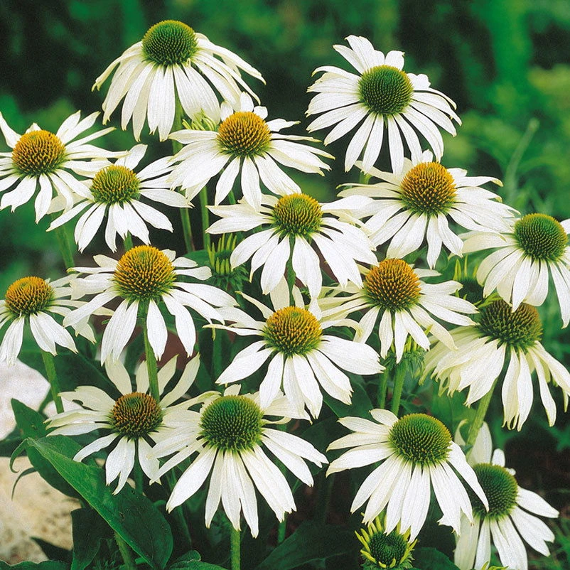 Mit dem weißen Sonnenhut setzen Sie leuchtende Akzente in Staudenbeeten, Rabatten oder Kübeln. Die Sorte ‚Alba‘ bezaubert mit langblühenden, weißen Zungenblüten, die wie kleine Schirmchen aussehen und um eine bräunlich-grüne Mitte angeordnet sind.