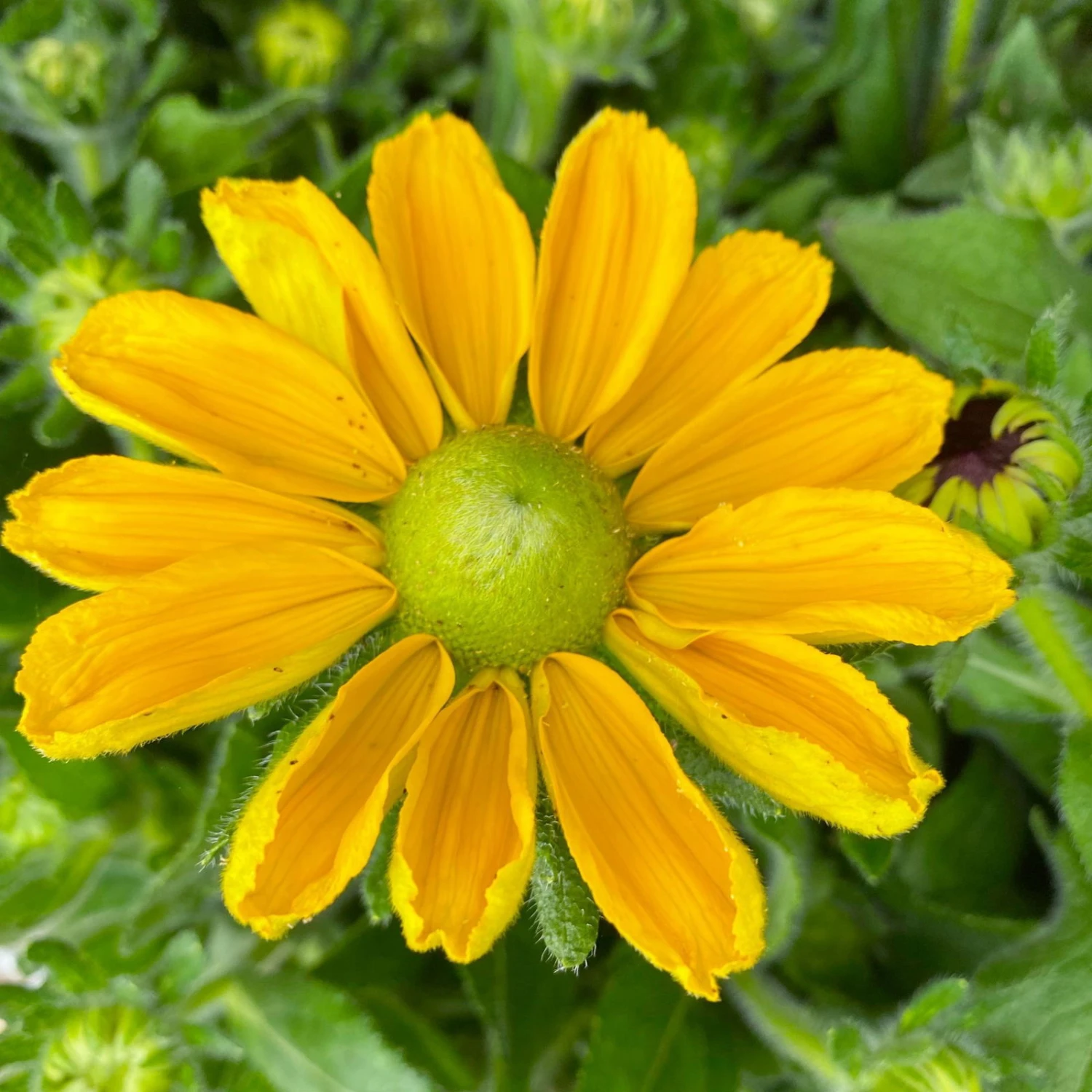 Je nach Sorte varrieren die grünen Blätter des Sonnenhuts (Rudbeckia hirta). Ursprünlgich ist der Sonnenhut in Nordamerika behiematet. Die einjährige Rudbeckie wächst buschig aufrecht und kann eine Wuchshöhe von 80 – 100 cm erreicht werden.