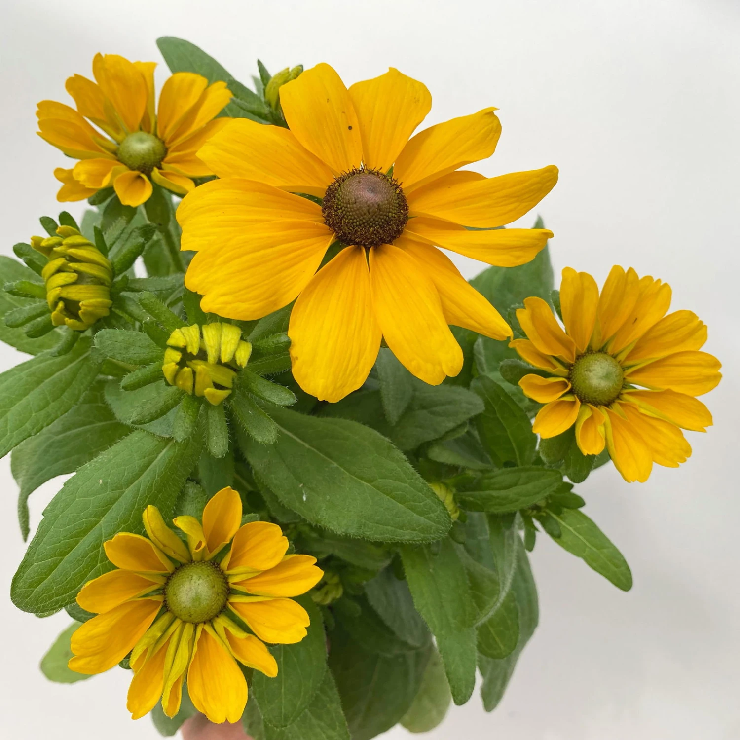 Die grünen Blätter des Sonnenhuts (Rudbeckia hirta ‚Toto®‘) sind in ihrer Form lanzettlich und haben eine raue Oberfläche. Ursprünlgich ist der Sonnenhut in Nordamerika behiematet. Die bei uns einjährige Rudbeckia hirta ‚Toto‘ wächst buschig aufrecht und kann eine Wuchshöhe von bis zu 50 cm erreichen.