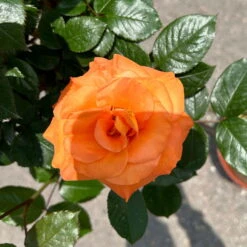 Auffällige Beetrose mit halbgefüllten, wunderschönen Blüten, die mit einem interessanten Farbspiel von orange über aprikot bis hin zu rosa überraschen. Dunkelgrünes, glänzendes Laub unterstützt die besondere Leuchtkraft der Blüten und macht die öfterblühende Beetrose ‚Westzeit®‘ zu einem besonderen Blickfang mit guter Fernwirkung.