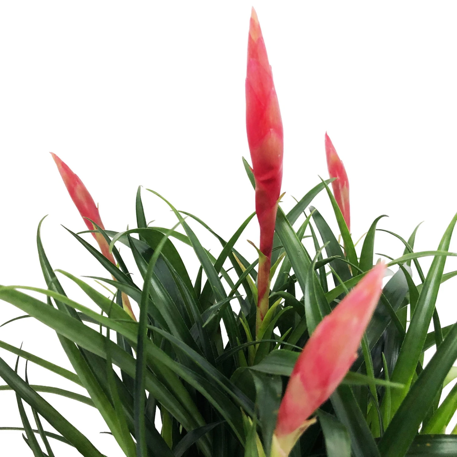 Die Vriesea multiflora ‚Astrid‘ überrascht durch ihre dekorativen Blütenstände in kraftvollem Rot und das saftige Grün der Blätter. Sie erhalten die Vriesea in dem stilvoll gestalteten Korb aus Seegras Maki. Dieses südamerikanisches Bromeliengewächs ist wärmeliebend und ganzjährig bei Temperaturen über 20 Grad Celsius zu halten. Ein nährstoffreiches Substrat mit guter Drainage ist für die erfolgreiche Pflege der Bromelien unentbehrlich. Halten Sie den Pflanzboden gleichmäßig feucht und vermeiden Sie unbedingt Staunässe. Wir empfehlen, die Vriesea multiflora ‚Astrid‘ mit lauwarmem und kalkarmem Wasser zu gießen, das Sie direkt in die Blattrosetten geben dürfen. Diese Zierpflanze fühlt sich in hellen, sogar sonnigen Lagen wohl. Im Sommer ist ein Standort im Freien für Ihre Vriesea genau richtig. Da diese Bromelie bei Nacht hohe Mengen an CO2 aufnimmt, eignet sich die Zimmerpflanze unter anderem für die Schlafzimmerbegrünung.