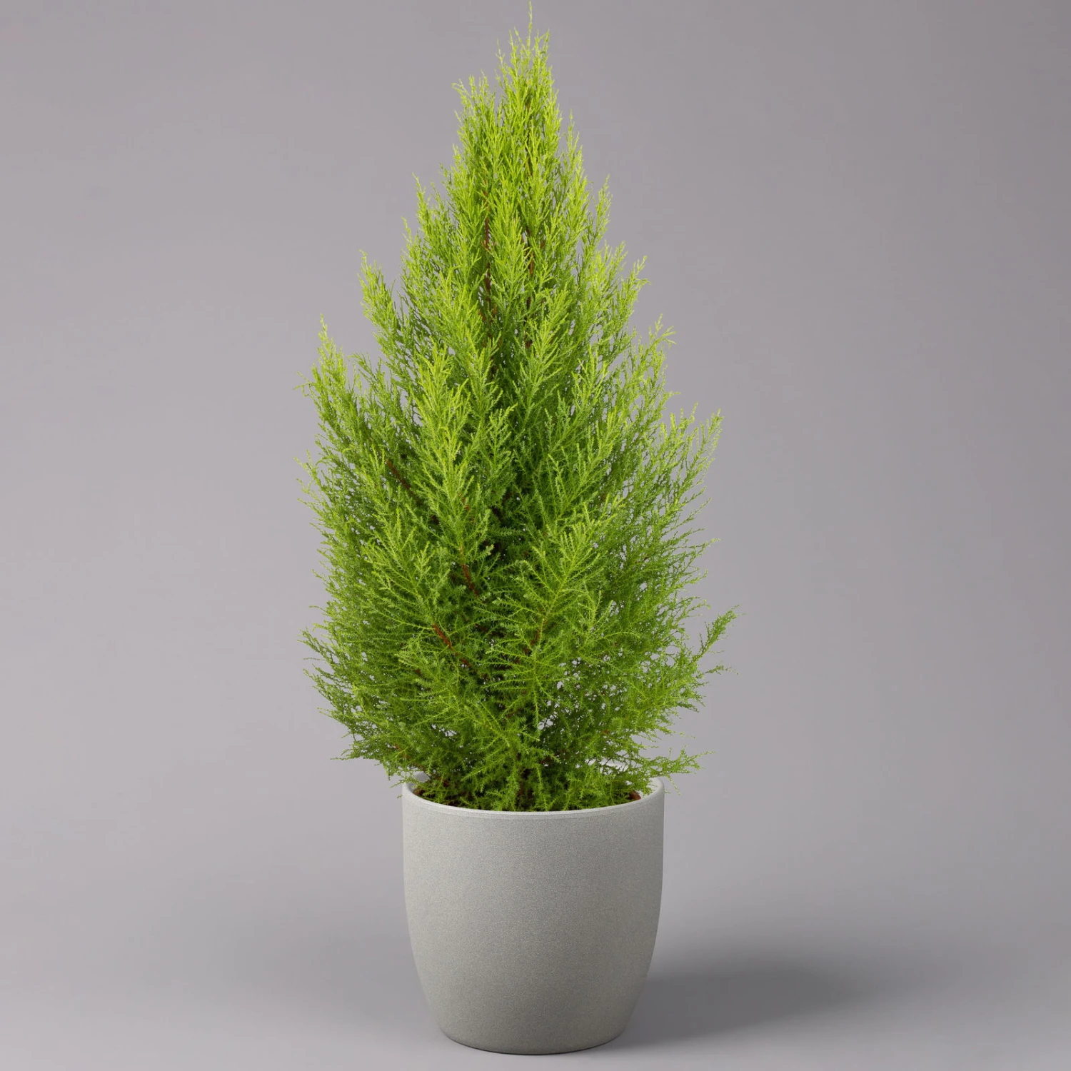 Die Zimmerzypresse (Cupressus macrocarpa ‚Goldcrest Wilma‘), auch unter dem Namen Monterey-Zypresse bekannt, ist eine Zypressenart aus dem amerikanischen Kalifornien. Das Gehölz kommt dort natürlicherweise in Küstenregionen vor und gedeiht als imposanter Baum mit teilweise bizarrem Wuchs. Charakteristisch sind die schuppenartigen Nadelblätter, die bei der Sorte ‚Goldcrest Wilma‘ in intensivem Gelbgrün strahlen. Bei der Kultur in unseren Regionen wächst die Zypresse typisch ihrer Art säulenartig bis kegelförmig und elegant aufrecht.